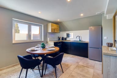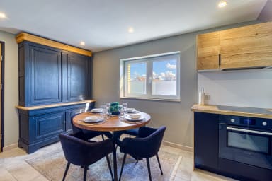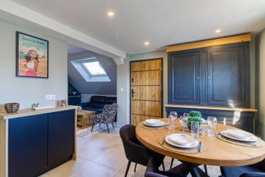 🔹Open-plan kitchen: fridge, freezer, induction hob, oven, microwave, dishwasher, kettle, coffee machine (Nespresso compatible capsules), table with 4 chairs