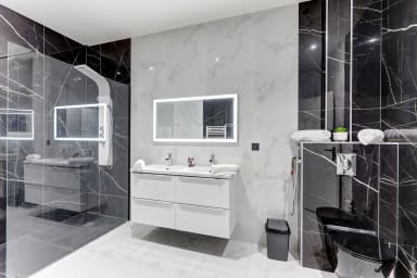 🔹Bathroom 1: walk-in shower, 2 sinks, toilet