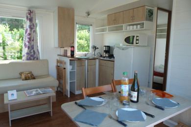 Located in a lively and secure camping environment, the accommodation may be exposed to moderate ambient noise related to the life of the site and shared facilities (playgrounds, climbing structures, surveillance devices), which contribute to a family-friendly and reassuring atmosphere.