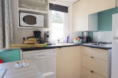 Outside, the private patio extends the living space and allows you to enjoy al fresco dining thanks to the barbecue, perfect for sharing convivial moments. Pets are welcome at an additional cost, so the whole family can come along on holiday. A laundrette is available on site and the well-lit entrance makes arrivals easy, even in the evening. Cleaning must be done before departure, in accordance with the accommodation conditions.