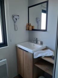 The living room is pleasant and well equipped, with a functional kitchen including a cooker, microwave, dishwasher, refrigerator, coffee machine, kettle, toaster, and all the necessary crockery, including wine glasses. You also have access to Wi-Fi, a television, radiators, storage space with hangers, hot water, and smoke and carbon monoxide detectors for your safety. Bed linen and towels are provided for a peaceful stay.
