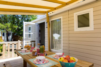 For your safety and peace of mind, the accommodation is equipped with smoke and carbon monoxide detectors, and the entrance is well-lit. A laundromat is available on the campsite. As in any lively holiday environment, some noise may be present depending on the time of year, and certain surveillance systems, as well as play and climbing structures, are installed in the campsite's communal areas.