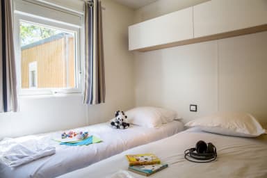 This accommodation has been designed to offer space, comfort, and practicality, ideal for a stay with family or friends. It comprises two separate bedrooms: a master bedroom with a queen-size bed (160 x 200 cm) offering excellent comfort, and a second bedroom with two single beds (80 x 190 cm), perfectly suited for children or guests. The sofa in the living area provides additional sleeping space while maintaining a pleasant feel during the day.