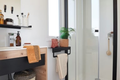 This comfortable and accessible accommodation has been designed to offer a practical and enjoyable stay, for families or couples, while meeting the specific needs of travellers. It has two separate bedrooms: one bedroom with a double bed (140 x 200 cm) and a second bedroom with a bunk bed comprising two 80 x 190 cm beds. A sofa bed in the living room completes the sleeping arrangements and can accommodate additional travellers.