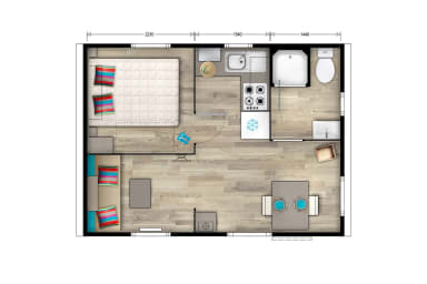 A practical and well-designed accommodation, perfect for enjoying the camping spirit to the full while maintaining a comfortable and independent living space.