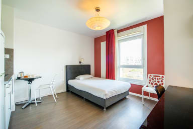 Located in Saint-Herblain, close to the Zenith in Nantes and just 300 meters from the tramway and on the outskirts of Nantes, L'Herblinois is a bright studio apartment that can accommodate one person. Ideal for a business trip, a student stay, or a weekend in the region, this accommodation combines tranquility and convenience with the simplicity and security provided by Guestadom.