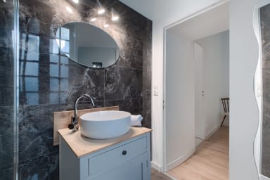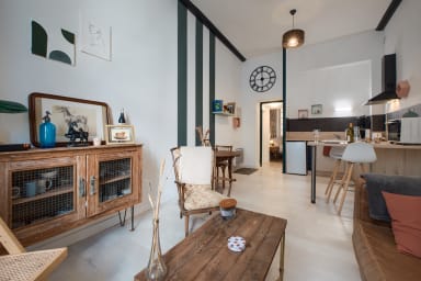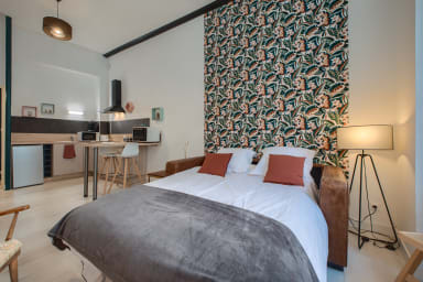 As soon as you arrive, L’Instant welcomes you into a warm and practical atmosphere, ideal for a comfortable stay in Laval. Located right in the city centre, this 46 m² one-bedroom flat on the mezzanine floor offers a cosy and practical setting, perfectly suited to business trips as well as getaways for couples, families or groups of friends.