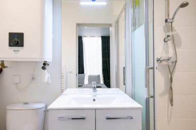 🔹Salle d’eau : douche, espace de rangement et WC