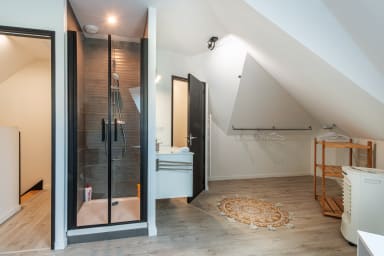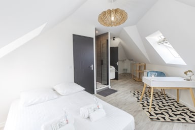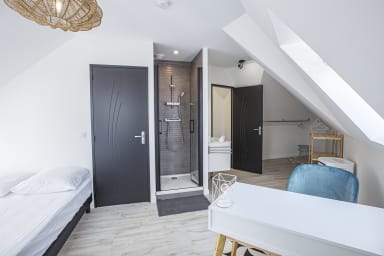 🔹Chambre 3 : lit double (140 x 190 cm), TV, bureau, salle de douche attenante, WC indépendant
