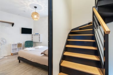 Arrivée autonome - Linge de lit et de bain inclus - Ménage inclus - 6 personnes - 170m gare - Salle de cinéma - Déplacement professionnel