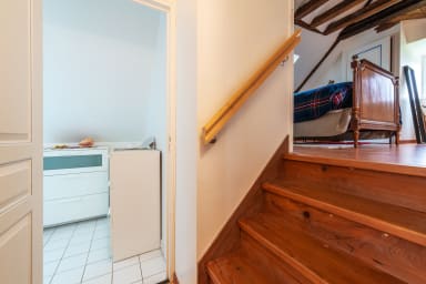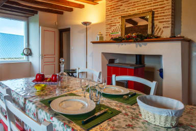 🔹 Cuisine : réfrigérateur, congélateur, four, plaque à induction, machine à café Nespresso, bouilloire, grille-pain, poêle à bois, table avec 6 chaises