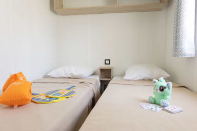 Situé dans un environnement de camping familial et animé, le logement peut être exposé à un bruit ambiant modéré, lié à la vie du site, aux structures de jeux et d’escalade ainsi qu’aux dispositifs de surveillance, contribuant à une atmosphère conviviale et sécurisée.