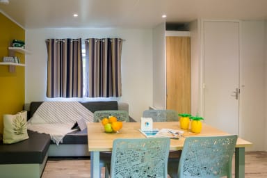 Situé au cœur d’un camping familial et animé, le logement peut être exposé à un bruit ambiant modéré, lié à la vie du site, aux structures de jeux et d’escalade ainsi qu’aux dispositifs de surveillance, participant à une ambiance conviviale et sécurisée.