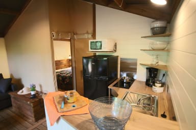 Un hébergement simple et pratique, parfaitement adapté aux familles souhaitant profiter de l’esprit camping tout en conservant un espace privatif pour se retrouver.