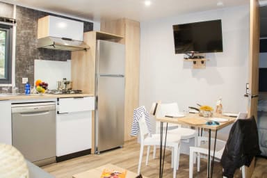 Un hébergement confortable et bien équipé, parfait pour profiter des infrastructures du camping tout en conservant un espace intime et agréable pour se retrouver.