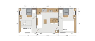 Ce logement a été pensé pour offrir espace, confort et praticité, idéal pour un séjour en famille ou entre amis. Il se compose de deux chambres séparées, dont une chambre parentale équipée d’un lit queen size (160 x 200), offrant un excellent confort, et une seconde chambre avec deux lits simples (80 x 190), parfaitement adaptée aux enfants ou aux invités. La banquette dans la pièce de vie permet d’accueillir des couchages supplémentaires tout en conservant un espace agréable en journée.