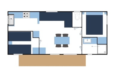 Situé dans un environnement de camping familial et animé, le logement peut être exposé à un bruit ambiant modéré, lié à la vie du site, aux structures de jeux et d’escalade ainsi qu’aux dispositifs de surveillance, contribuant à une atmosphère conviviale et sécurisée.