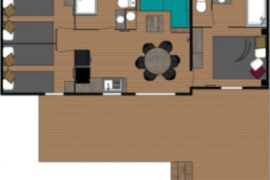 Un hébergement spacieux et bien équipé, parfait pour profiter pleinement des infrastructures du camping et partager des vacances conviviales en toute sérénité.