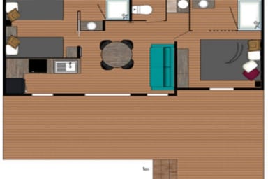 Un hébergement confortable et bien équipé, idéal pour profiter des infrastructures du camping tout en savourant des moments de détente et de convivialité.