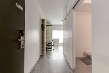 La résidence calme et étudiante dispose de parties communes, dont une laverie en service payant (machines à laver, sèche-linge et matériel de repassage) et un parking à vélos, pour plus de praticité.
