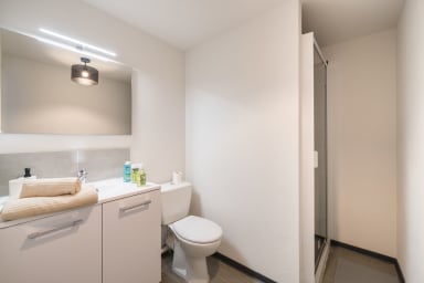 La résidence dispose de parties communes pratiques, incluant une laverie en libre-service (service payant) ainsi qu’une salle de sport accessible aux résidents. À l’extérieur, le studio bénéficie d’un stationnement dans la rue gratuit.