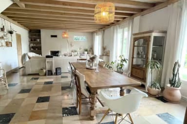- Grande pièce de vie : salon, séjour et salle à manger avec vidéo-projecteur et cheminée.