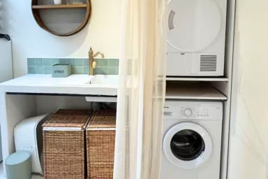 - Espace buanderie avec lave-linge et sèche-linge (séchoir/étendoir à linge disponible)