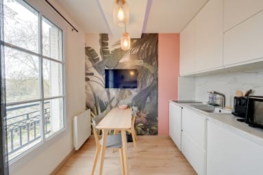Plongez dans ce charmant studio de 22 m² avec vue sur la Marne, idéal pour un couple ou un voyageur seul. Confortable et lumineux, il offre un espace cosy avec cuisine équipée, lit double, salon modulable et espace de travail. À seulement 4 minutes du métro, explorez Paris facilement tout en profitant de la tranquillité des quais et de la douceur de la vie en bord de Marne.